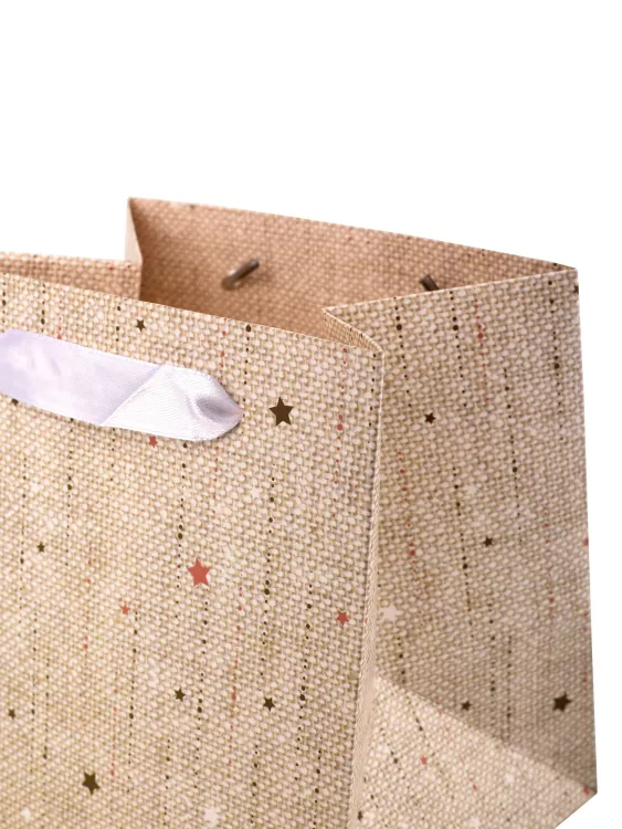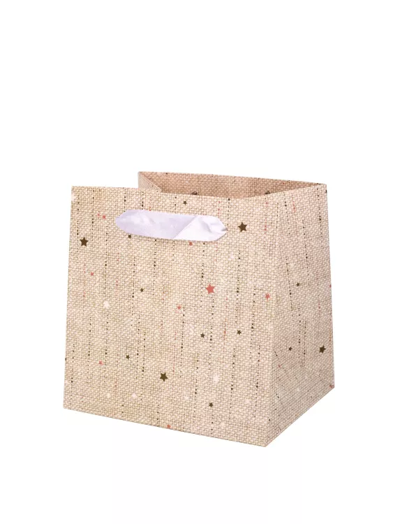 Пакет бумажный "Бежевые звёздочки" 15х15х12см