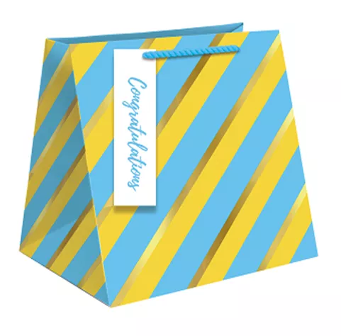 Пакет бумажный "Congratulations" 23х23х20см, цв.желто-голубой