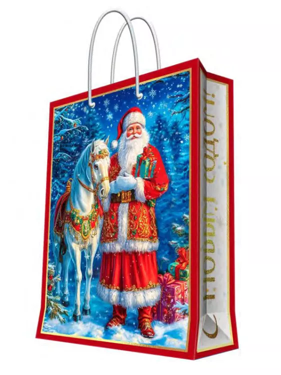 Пакет бумажный "Дед Мороз с лошадью" 17,8x22,9x9,8см
