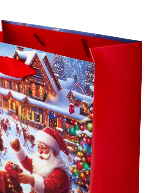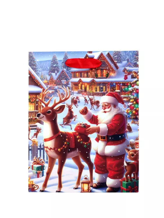 Пакет бумажный "Дед Мороз с оленем" 23х18х10см