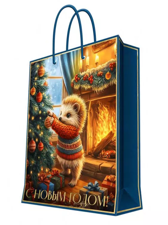 Пакет бумажный "Ёжик с елочкой" 17,8x22,9x9,8см