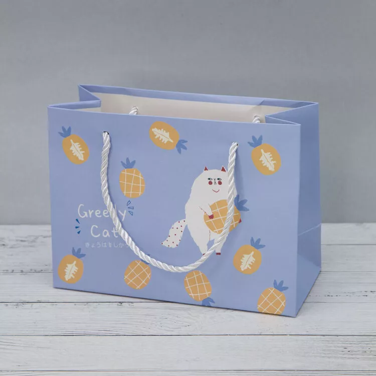 Пакет бумажный "Greedy, cat, pineapple" 19,5х14,5х10см