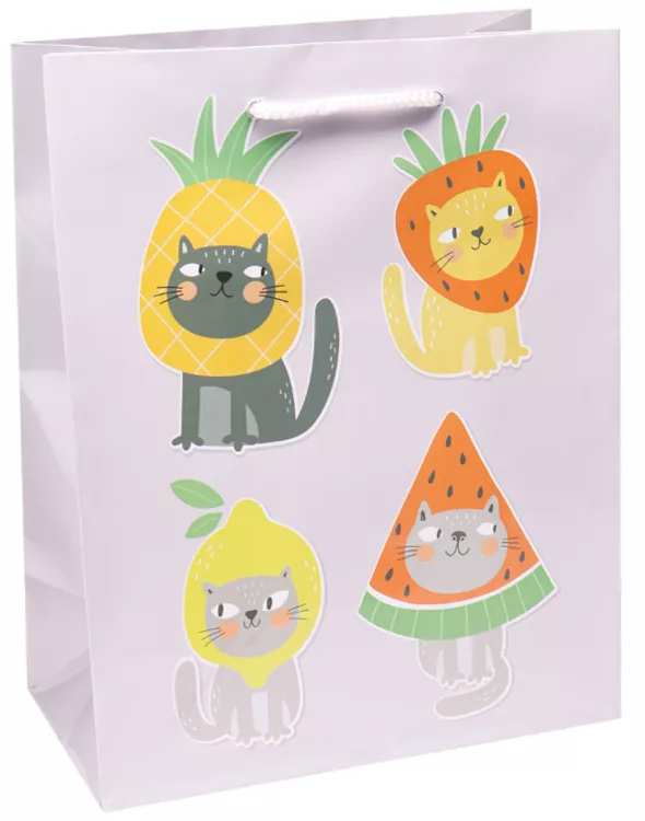 Пакет бумажный "Котик с фруктами" 18x23x8см