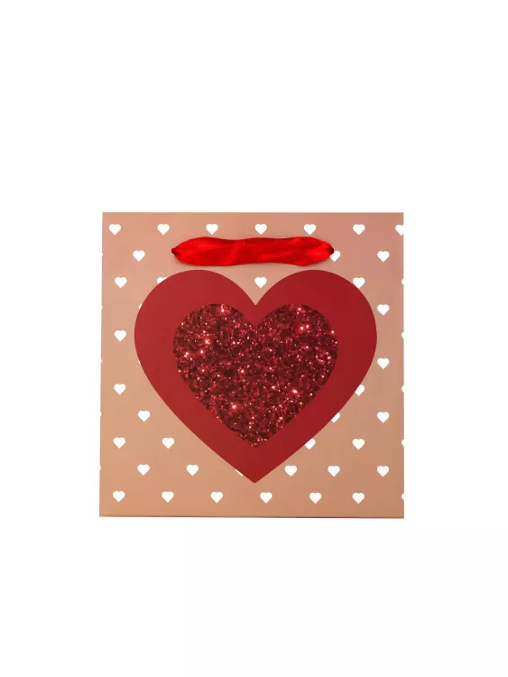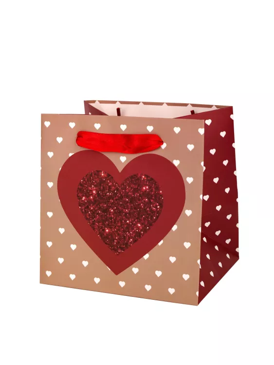 Пакет бумажный "Красное сердце" 15х15х12cм