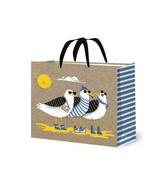 Пакет бумажный "Крутые чайки" 20,3x24x10,2см