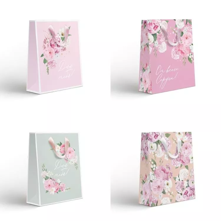Пакет бумажный "Нежность" 18х22,7х10см, 4 дизайна