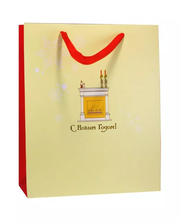 Пакет бумажный "Новогодний камин" С НГ" 32х26х12см