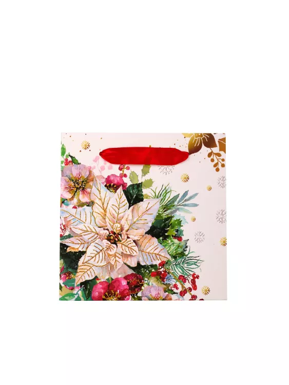 Пакет бумажный "Новогодний цветок " 15х15х12см