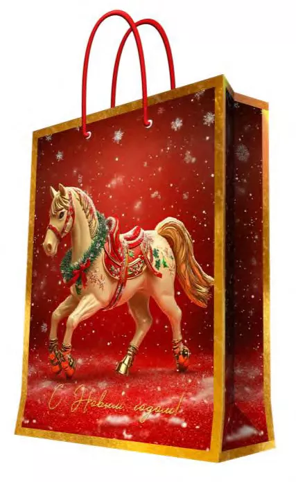 Пакет бумажный "Новогодняя лошадка" 17,8x22,9x9,8см