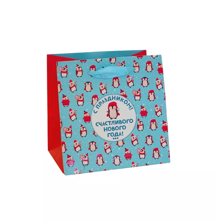 Пакет бумажный "Пингвинчики" 15х15х12см