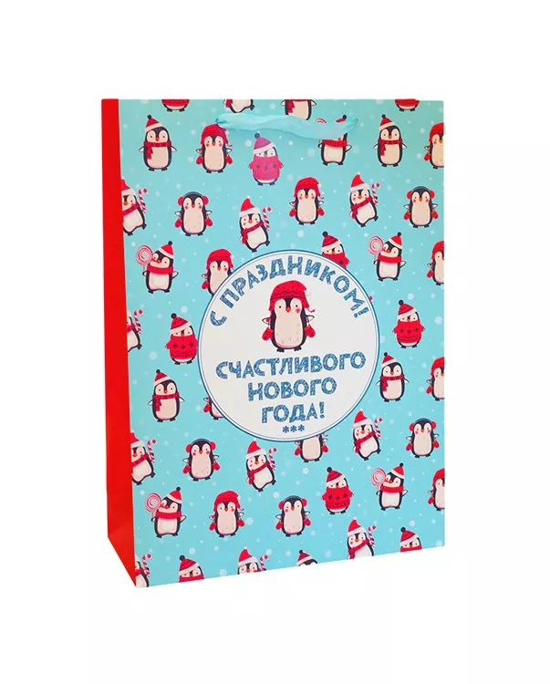 Пакет бумажный "Пингвинчики" 46х33х14см