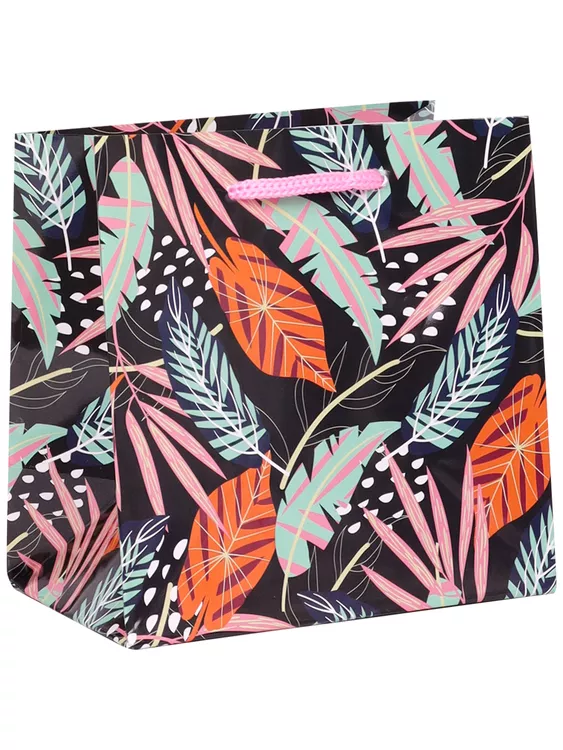 Пакет бумажный "Полосатые листья" 15х15х9см