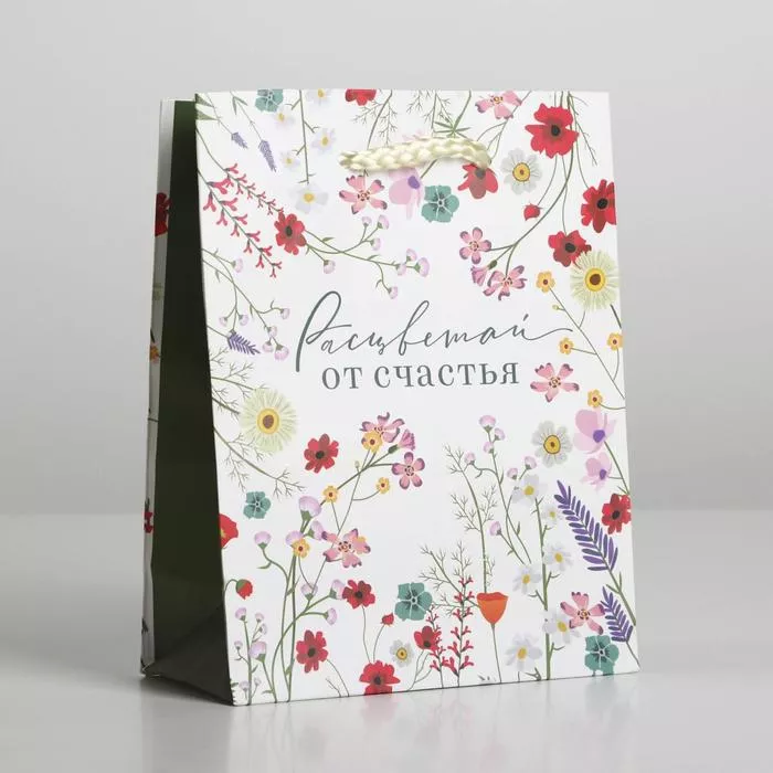 Пакет бумажный "Расцветай от счастья" 12х15х5,5см