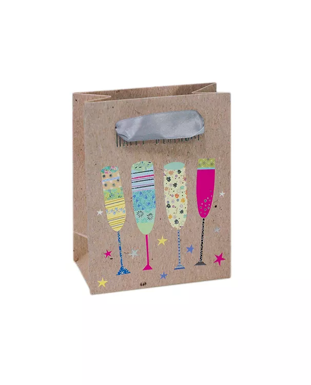 Пакет бумажный "Разноцветные бокалы" 14х11х6см