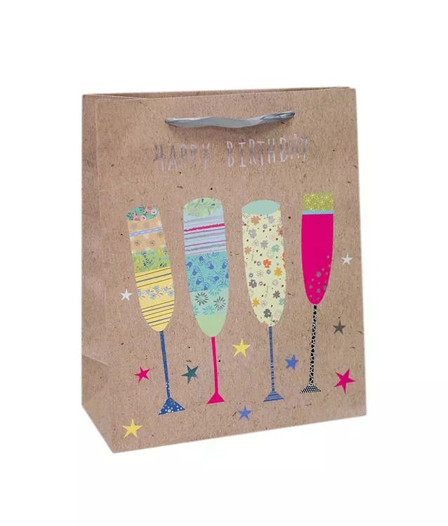 Пакет бумажный "Разноцветные бокалы" 32х26х12см