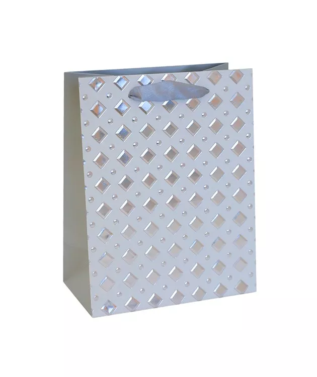 Пакет бумажный "Ромбики" серебряный 23х18х10см