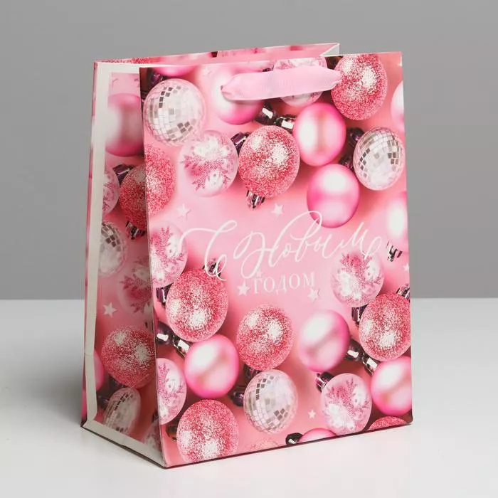 Пакет бумажный "Розовые шарики" 18х23х10см