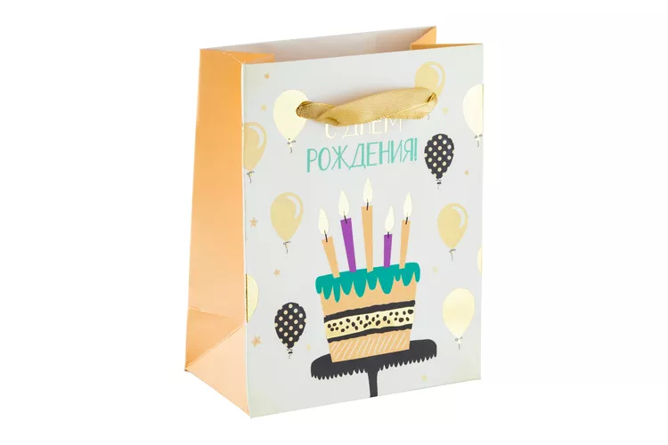 Пакет бумажный "С Днем Рождения!" 14х11х6см