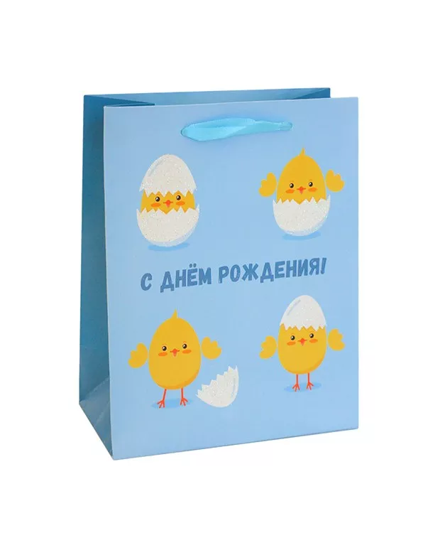 Пакет бумажный "С Днем рождения, цыпленок" 23х18х10см