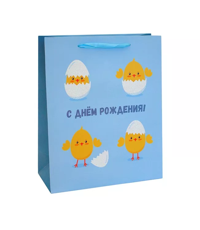 Пакет бумажный "С Днем рождения, цыпленок" 32х26х12см
