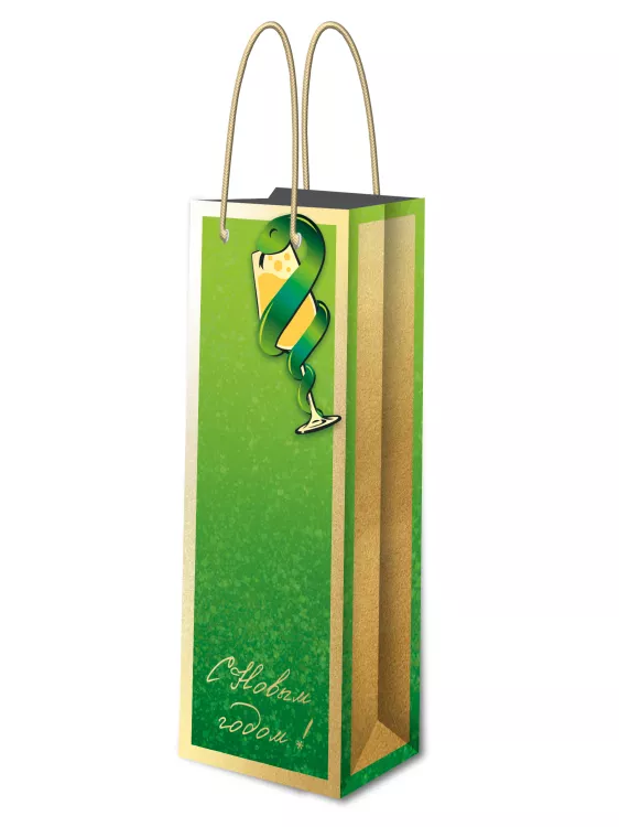 Пакет бумажный "С Новым Годом!" 12,7х36х8,3см, цв.зеленый