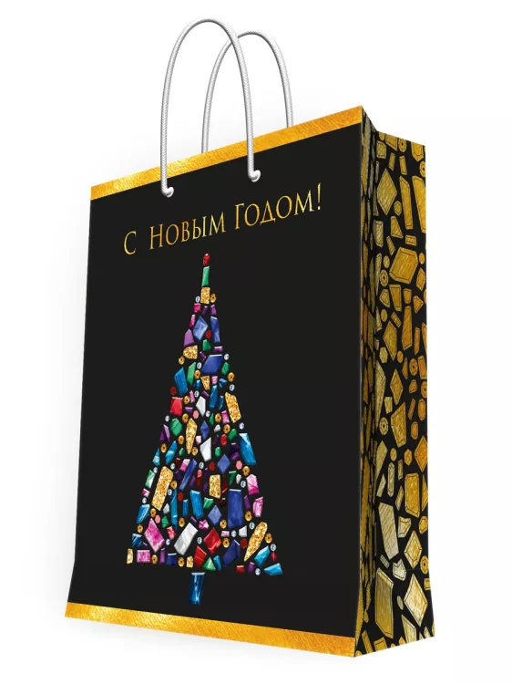 Пакет бумажный "С Новым Годом!" 17,8х22,9х9,8см, цв.черный