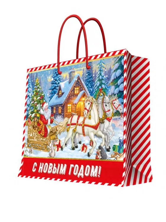 Пакет бумажный "С Новым Годом!" 23x18x11см, цв.красный