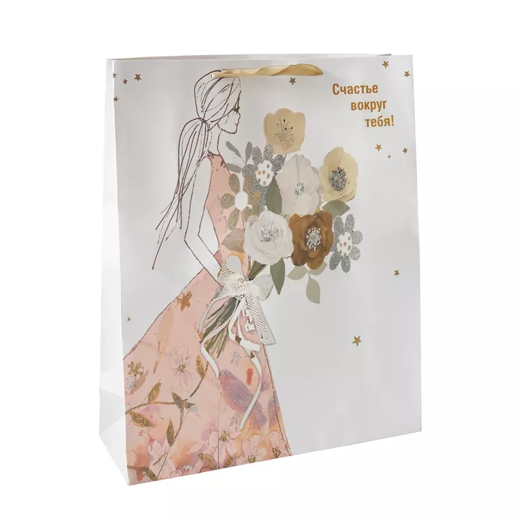 Пакет бумажный "Счастье вокруг тебя!" 50х40х15см