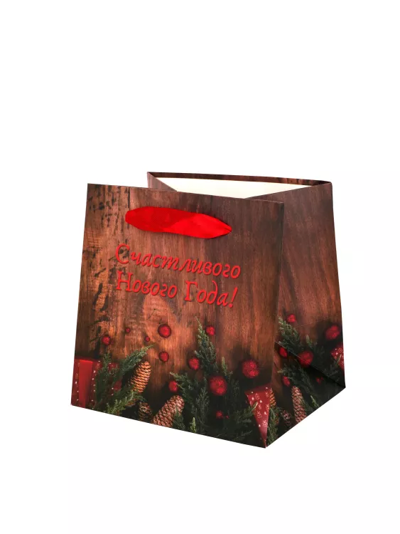 Пакет бумажный "Счастливого Нового Года!" 15х15х12см