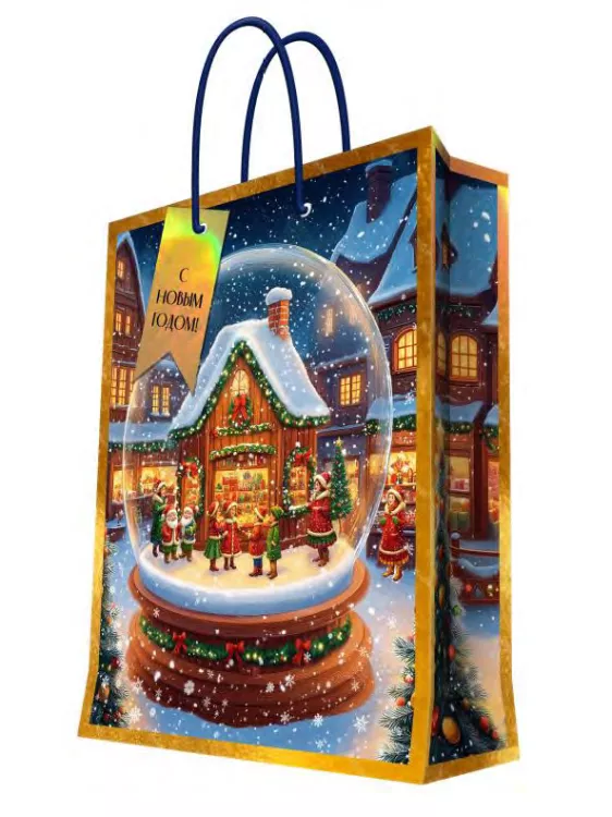 Пакет бумажный "Снежный шар" 17,8x22,9x9,8см
