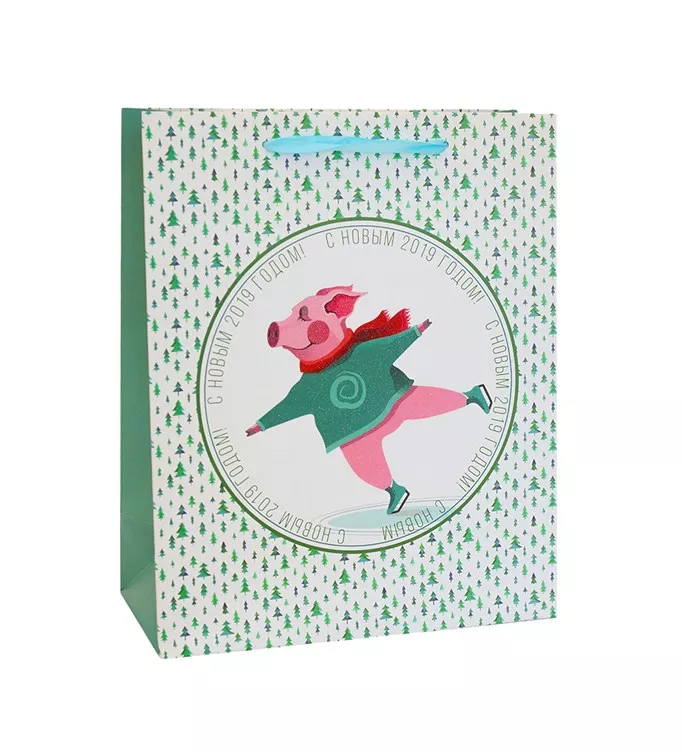 Пакет бумажный "Свин-фигурист" 32х26х12см