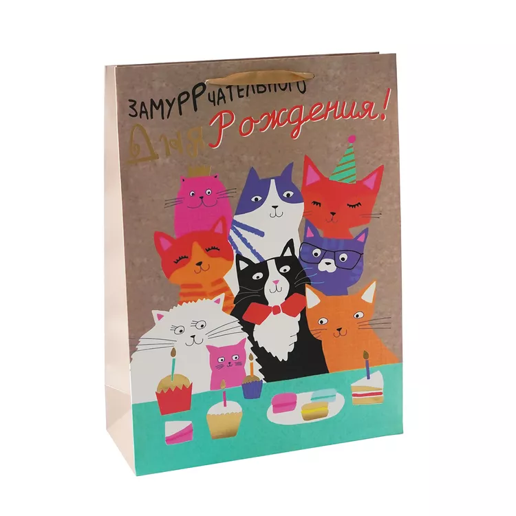 Пакет бумажный "Замуррчательного Дня Рождения!" 40х30х12см