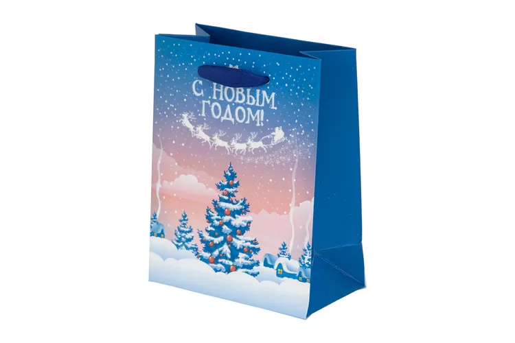 Пакет бумажный "Заснеженная ель" 14х11х6см