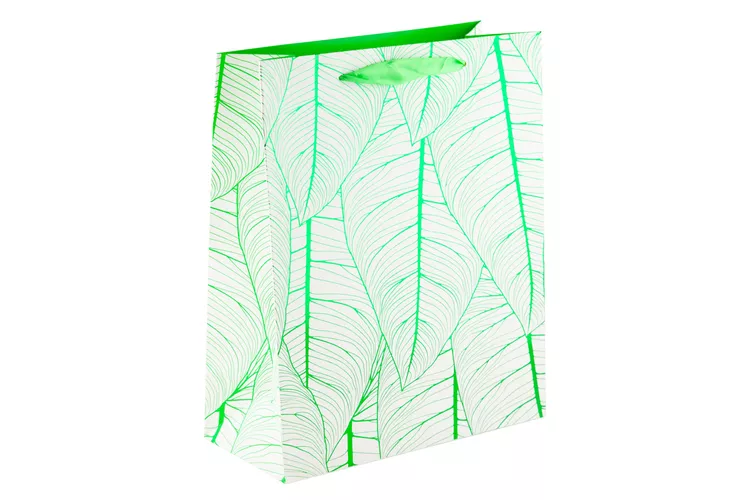 Пакет бумажный "Зеленые листья" 32х26х12см