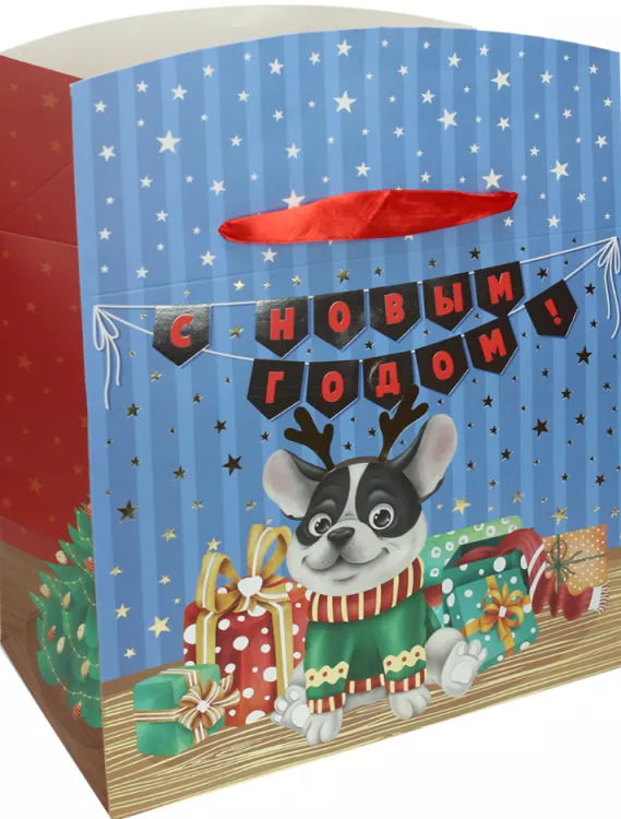 Пакет-коробка "Песик с подарками" 15х11х9см
