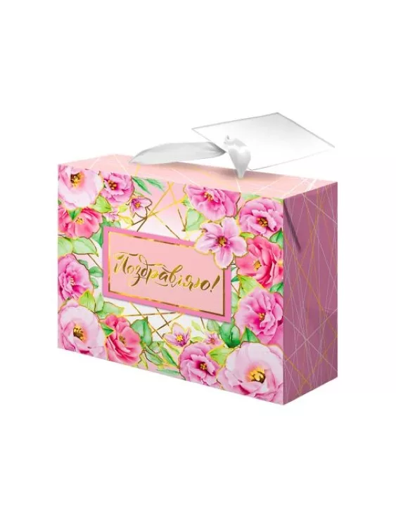 Пакет-коробка "Поздравляю!" 22,5х13,5х20см