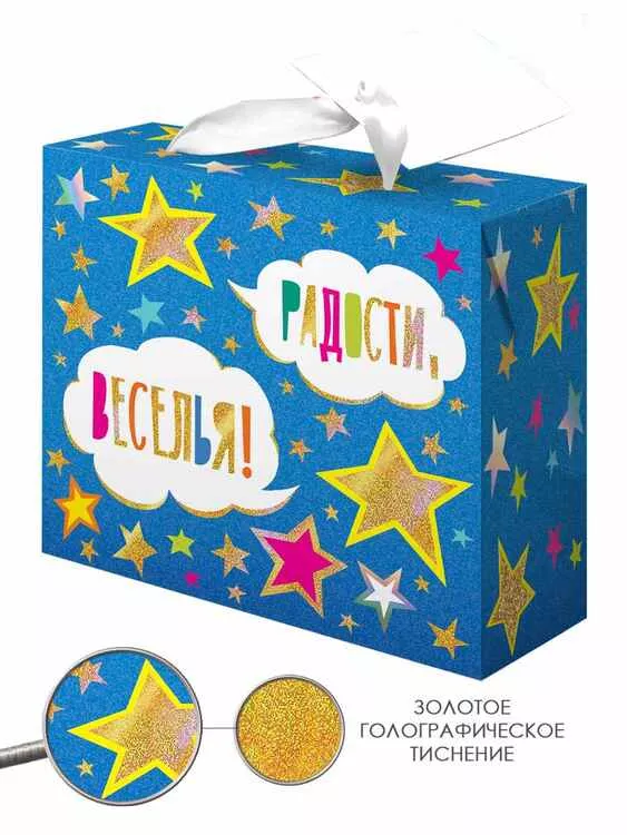 Пакет-коробка "Радости, веселья" 22,5х13,5х20см