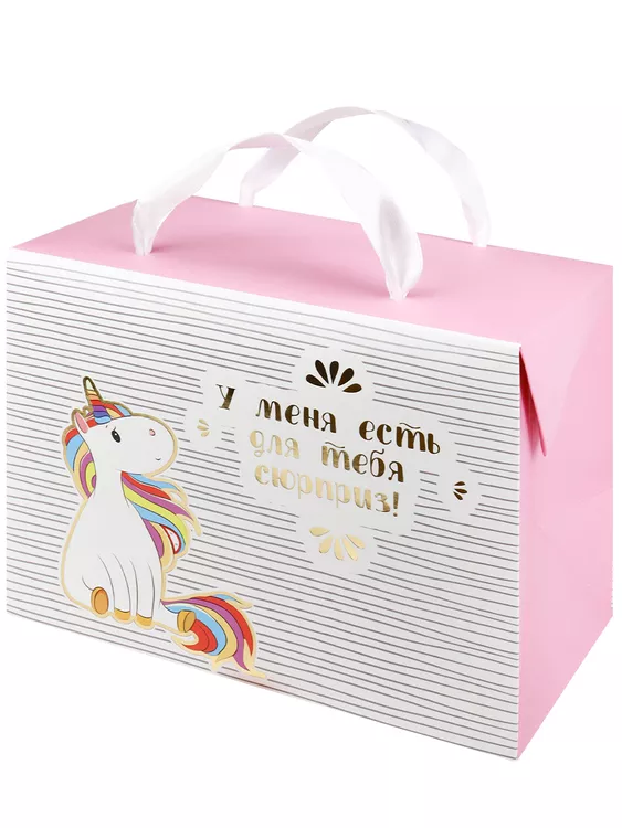 Пакет-коробка "Радужный единорог" 15х11х9см
