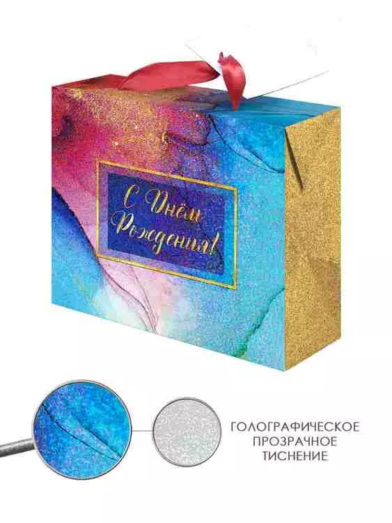 Пакет-коробка "С днем рождения!" 22,5х20х13,5см