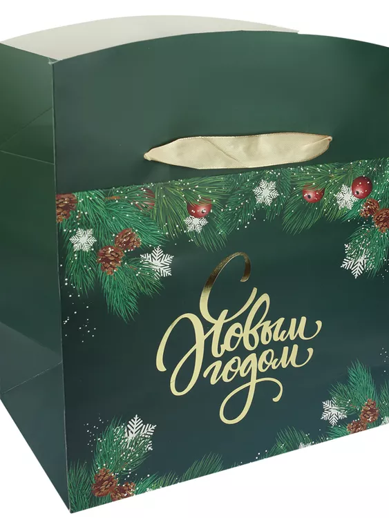 Пакет-коробка "Зеленая веточка" 22,5х20х13,5см
