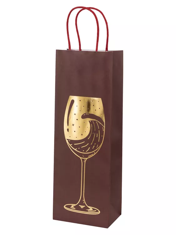 Пакет под бутылку "Бокал вина" 36х12,7х8,3см, цв.коричневый