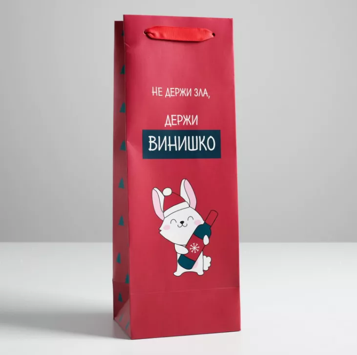 Пакет под бутылку "Не держи зла" 13х36х10см