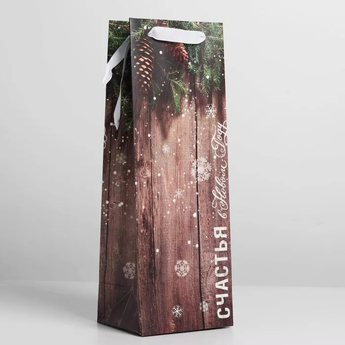 Пакет под бутылку "Счастье в Новом году" 13х36х10см