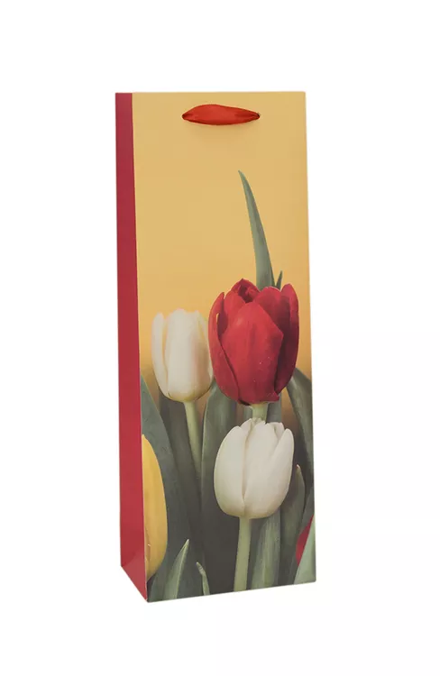 Пакет под бутылку "Тюльпаны" 36х13х8см