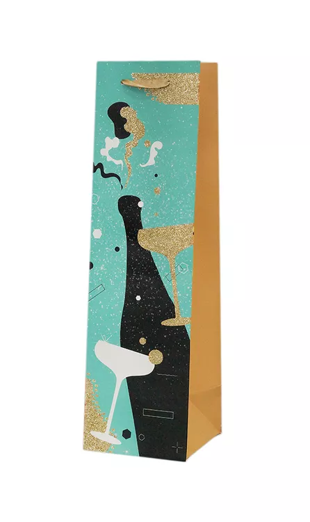 Пакет под бутылку "Веселые бокалы" 36х10.5х10.5см
