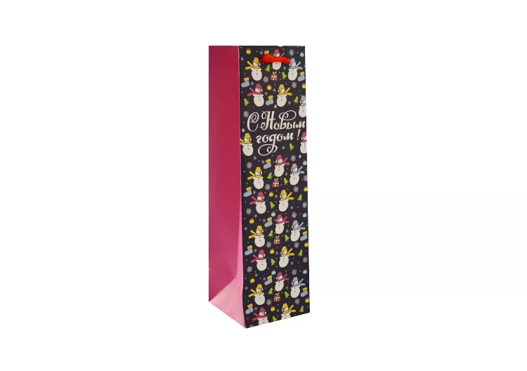 Пакет под бутылку "Веселые снеговики" 36х10,5х10,5см