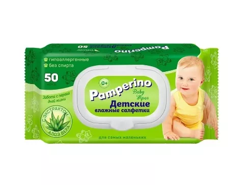 "Pamperino" Детские влажные салфетки с экстрактом алоэ вера 50шт.