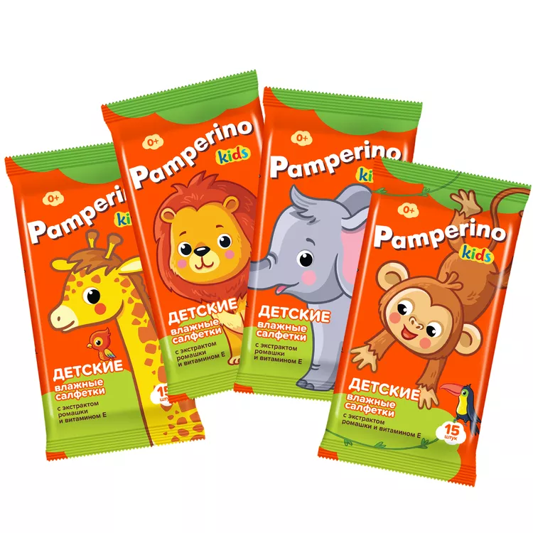 "Pamperino"Kids" Детские влажные салфетки с экстрактом ромашки и вит.Е 15шт.