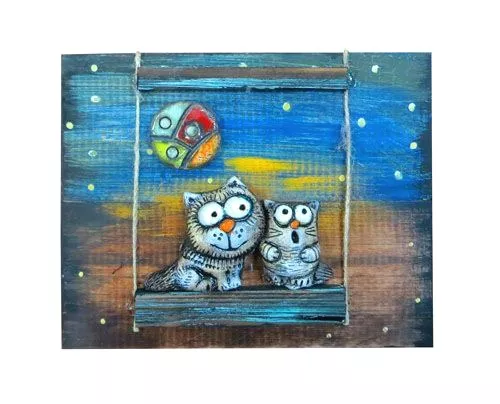 Панно "Коты на качелях" 30х25см