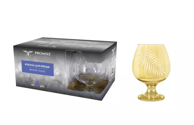 "Папоротник" Набор бокалов для бренди 6шт. 400мл, цв.янтарь